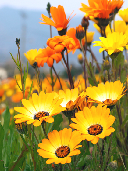 田んぼ一面のアフリカキンセンカを楽しむことができます。